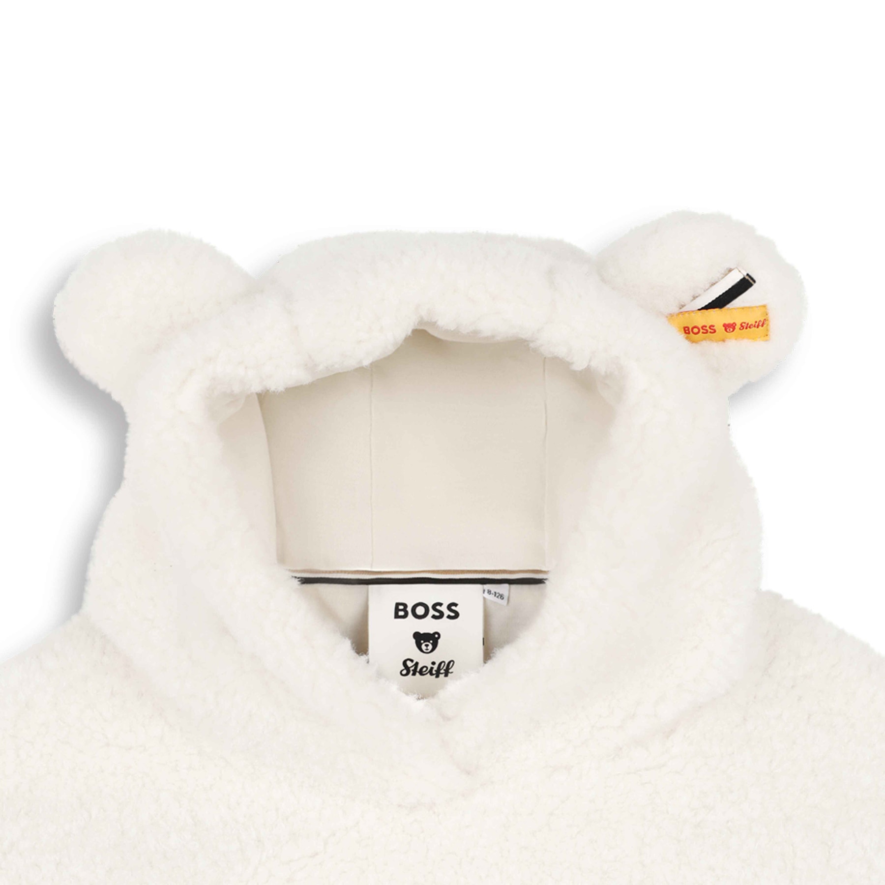 在寒冷的日子裡,想要感受溫暖舒適? BOSS x Steiff 聯名款連帽衫採用柔軟的泰迪絨布料,帶來舒適溫暖的穿著體驗。連帽衫有襯裡,並飾有俏皮的耳朵,胸前醒目的 BOSS 標誌更添時尚亮點。舒適的針織襯裡和兩個側插袋提供額外的保暖效果。羅紋袖口和下擺確保完美貼合。低調的聯名標誌飾品為整體造型增添優雅氣息。經典的白色設計,讓這款連帽衫輕鬆駕馭各種場合,無論是溫馨時刻還是日常出行,都能完美展現你的時尚品味。