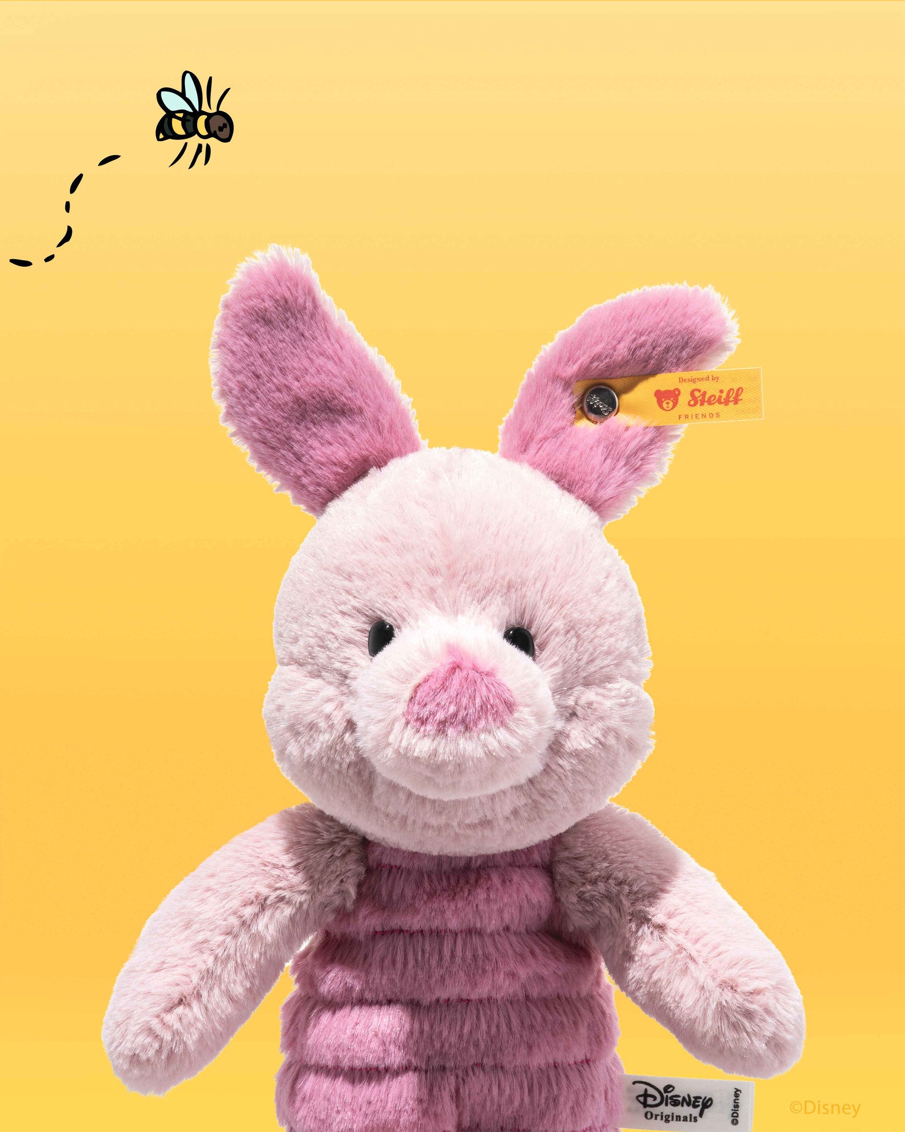 安靜、善良,總是陪伴在小熊維尼身邊的小豬,是百畝森林裡敏感而又討人喜歡的伙伴,他友善的性格贏得了無數人的喜愛。這款迪士尼經典角色精心設計的眼睛凸顯了他溫柔的神情,臀部的小豆袋確保他坐得穩當。他那件帶有刺繡條紋的粉紅色毛絨連身衣,讓他一眼就能被認出來。經典的Steiff「耳釦」設計,讓他成為陪伴你一生的貼心夥伴,為你帶來舒適和安全感。